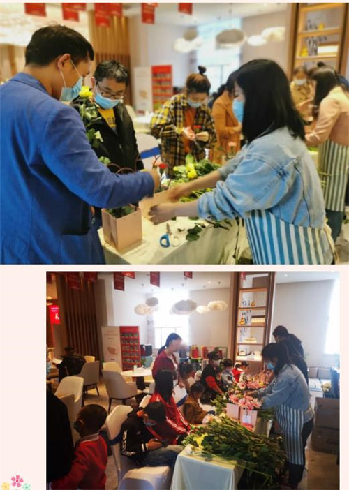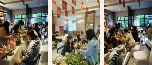 大家将一朵朵娇艳的花朵精心装点