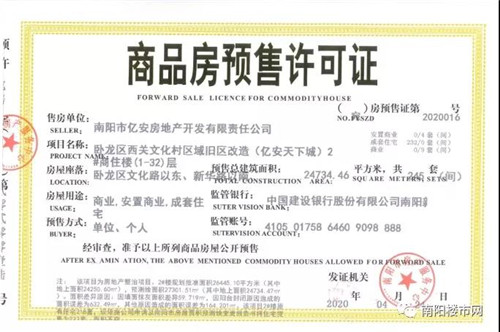 之后于3月底取得了预售证。所以,是真正的五证齐全!