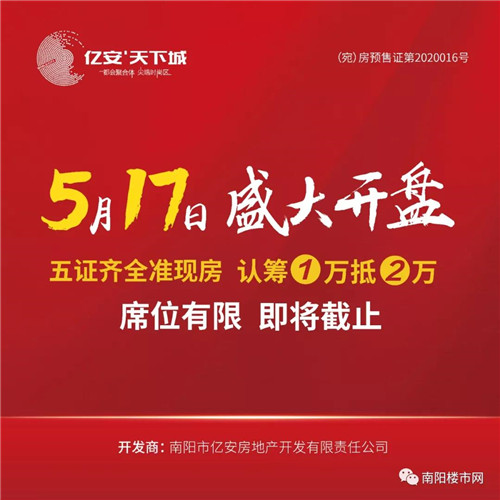 5月17日,亿安·天下城即将应时开盘,届时盛况,让我们拭目以待。
